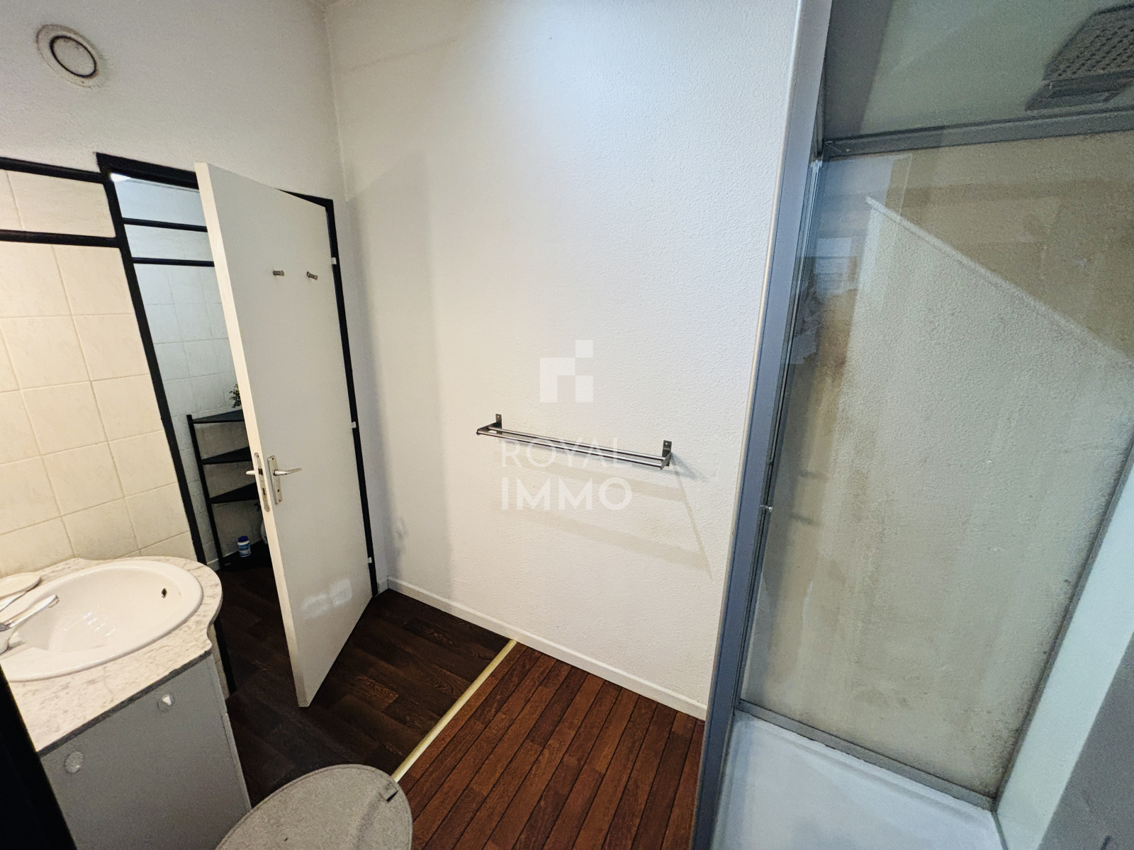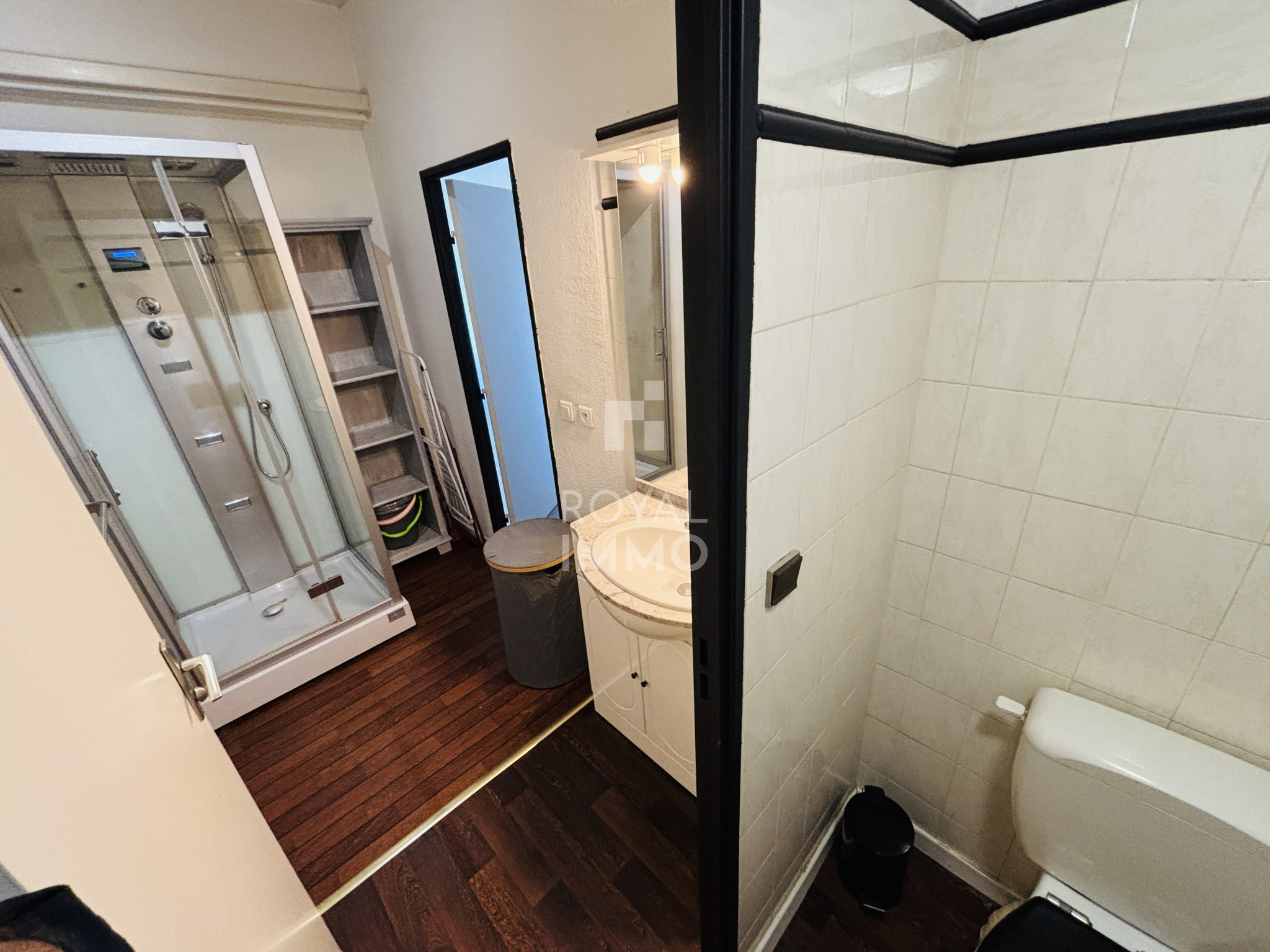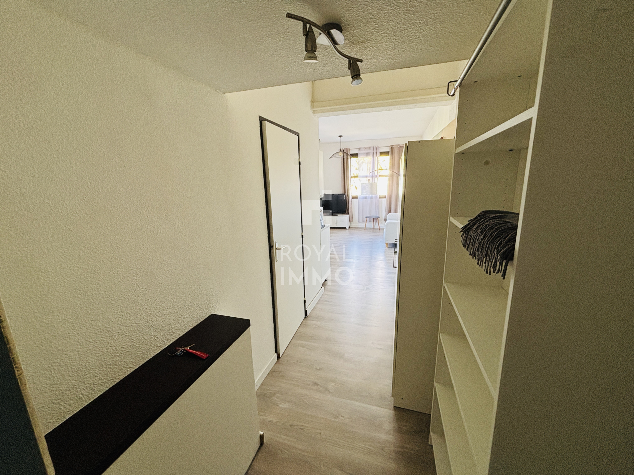 Studio meublé et climatisé situé au 1er étage, d’une superficie de 29,68m². Il se compose d’une entrée, d’une pièce de vie avec cuisine américaine, d’une salle d’eau et d’un WC.
