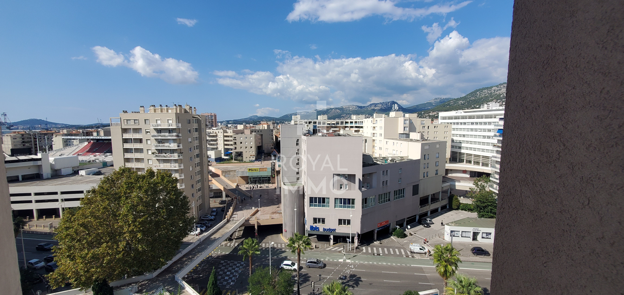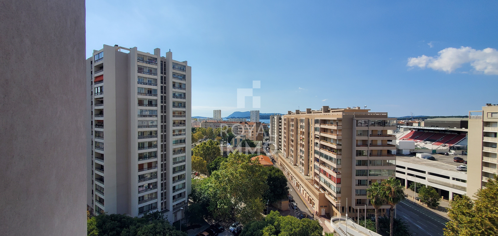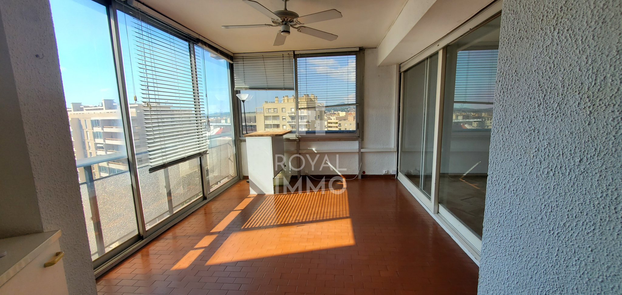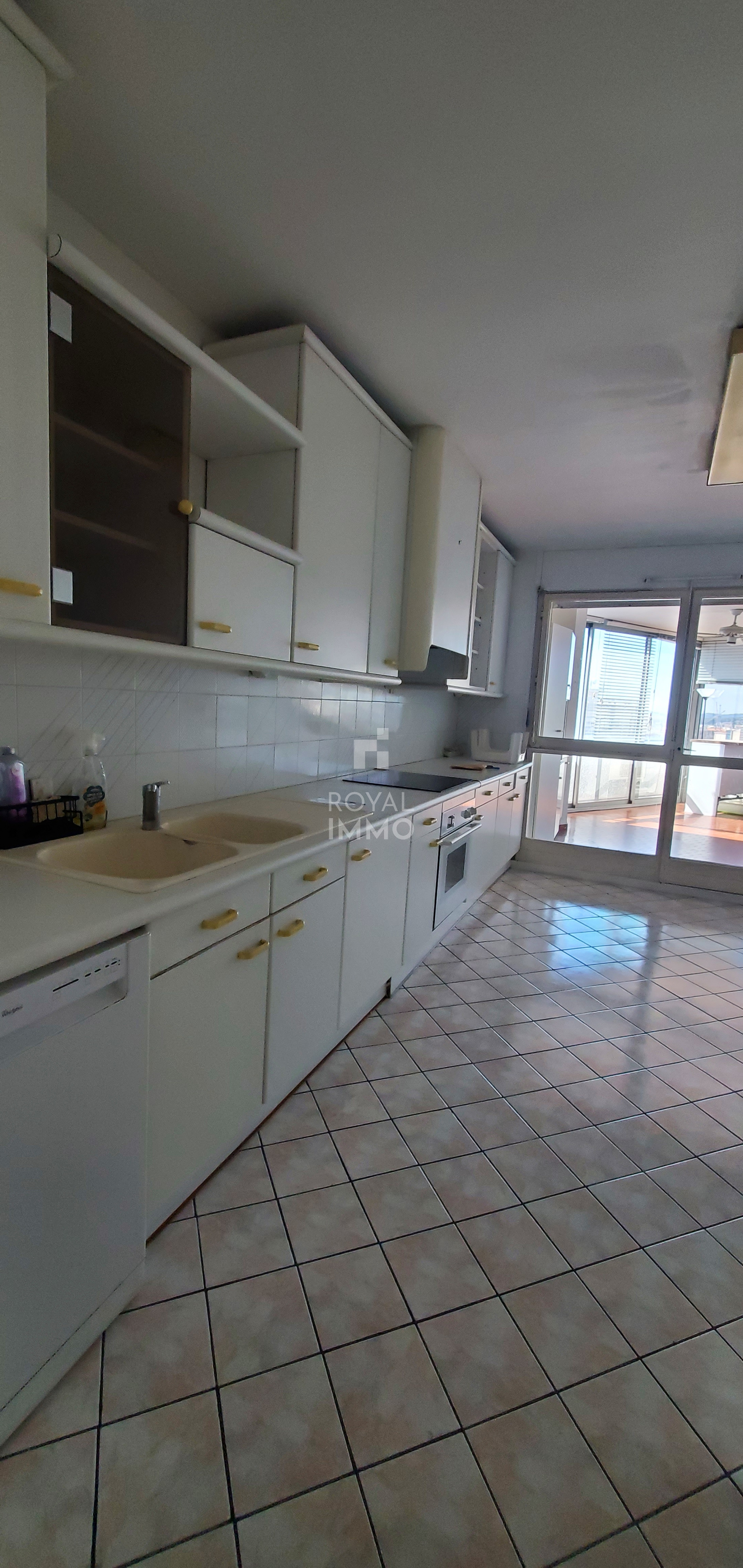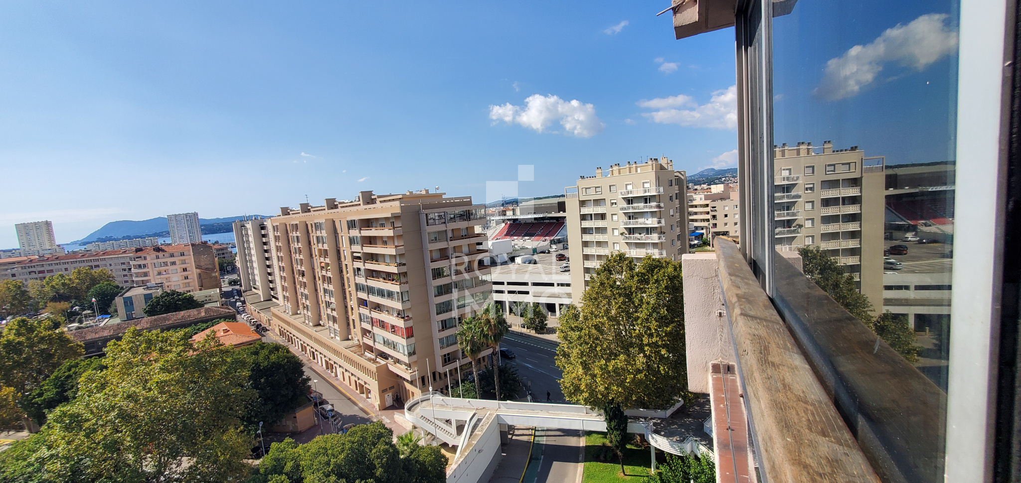 toulon la rode mayol: Le Martin Pecheur , Appartement à louer de 4 pièces de 103.20 m² climatisé + loggia fermée de 16.5 m², au 10émé evec ascenseur, comprenant une entrée avec placards , un salon salle a manger dinnant sur balcon, cuisine indépendante aménagée et partiellement équipée (four, plaques vitro et lave vaisselle) , 2 chambres avec placards, un dressing, une salle d'eau et un wc séparé - cave et place de de parking privative - DPE : C - Loyer 990.00€ par mois CC dont 190.00€ par mois de provisions sur charges (entretien pc chauffage et eau chaude avec Régularisation annuelle) - Dépôt de garantie : 800€ - Honoraires charge locataire : 968,00€ dont honoraires d'état des lieux : 309.00€