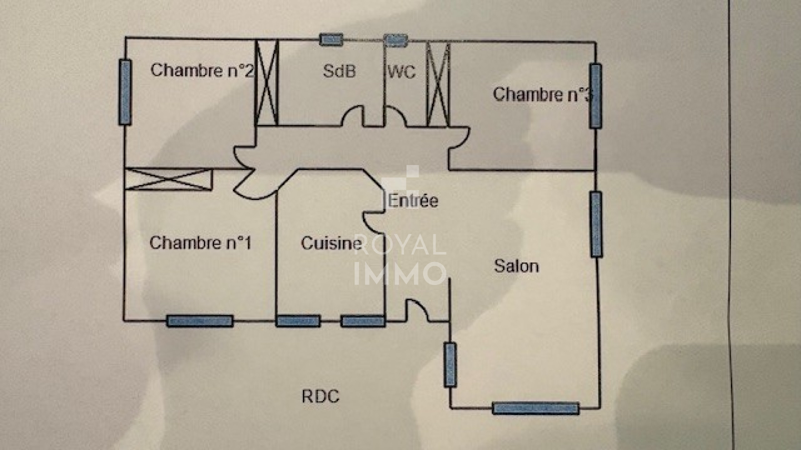 Le bien comprend: entrée, séjour avec cheminée, cuisine aménagée donnant sur terrasse sud, 3 chambres dont 2 avec palcard, salle de bains et wc.Garage attenant.