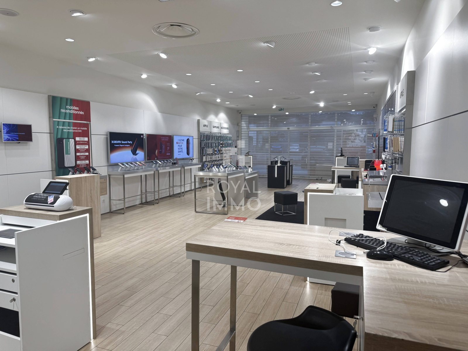 À vendre : murs commerciaux idéalement situés au 118 route de Cannes à Grasse, dans une petite copropriété à faibles charges. Ce local de 146 m² en rez-de-chaussée comprend une grande pièce principale avec portes vitrées automatisées, une réserve sécurisée et des sanitaires. À l’étage, des bureaux sont accessibles par un escalier de service. L’ensemble du local est sécurisé (porte de service à l’arrière, rideau électrique intérieur) et climatisé par un système gainable. Anciennement loué par SFR, il bénéficie d’une excellente visibilité, à proximité immédiate de grandes enseignes telles qu’Auchan, Action et Marie Blachère. Idéal pour tout projet commercial ou investissement patrimonial.