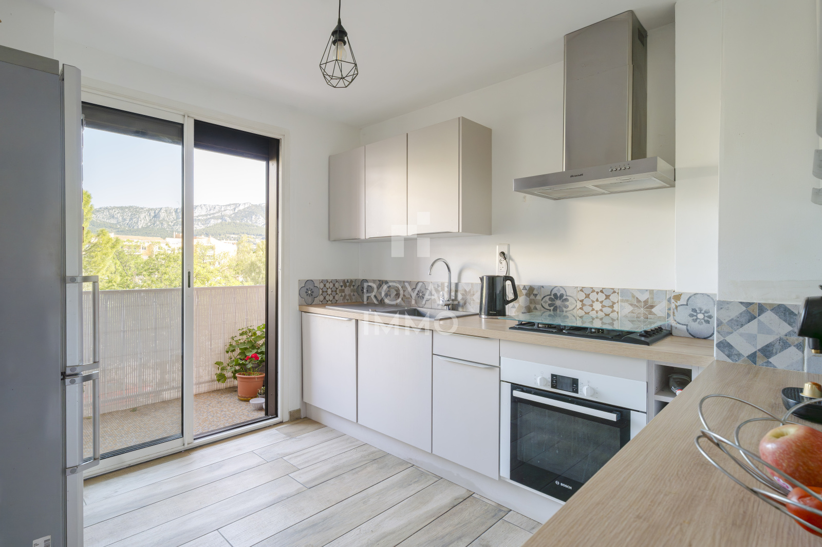 L’appartement se compose d’une cuisine aménagée et équipée avec balcon, d’un salon ouvert sur une salle à manger offrant un bel espace de vie de plus de 31 m², également prolongé par un second balcon.