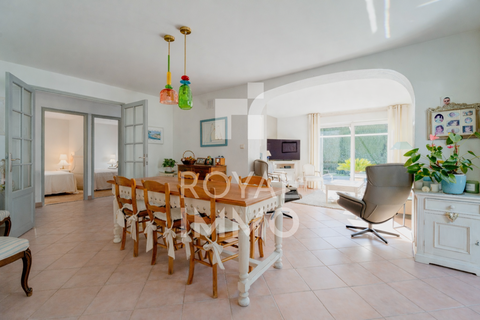 Au calme dans une impasse et à proximité immédiate des plages et des commerces, découvrez cette maison de plain-pied de 140 m² avec terrasses et piscine, implantée sur un terrain de 915 m² avec garage.