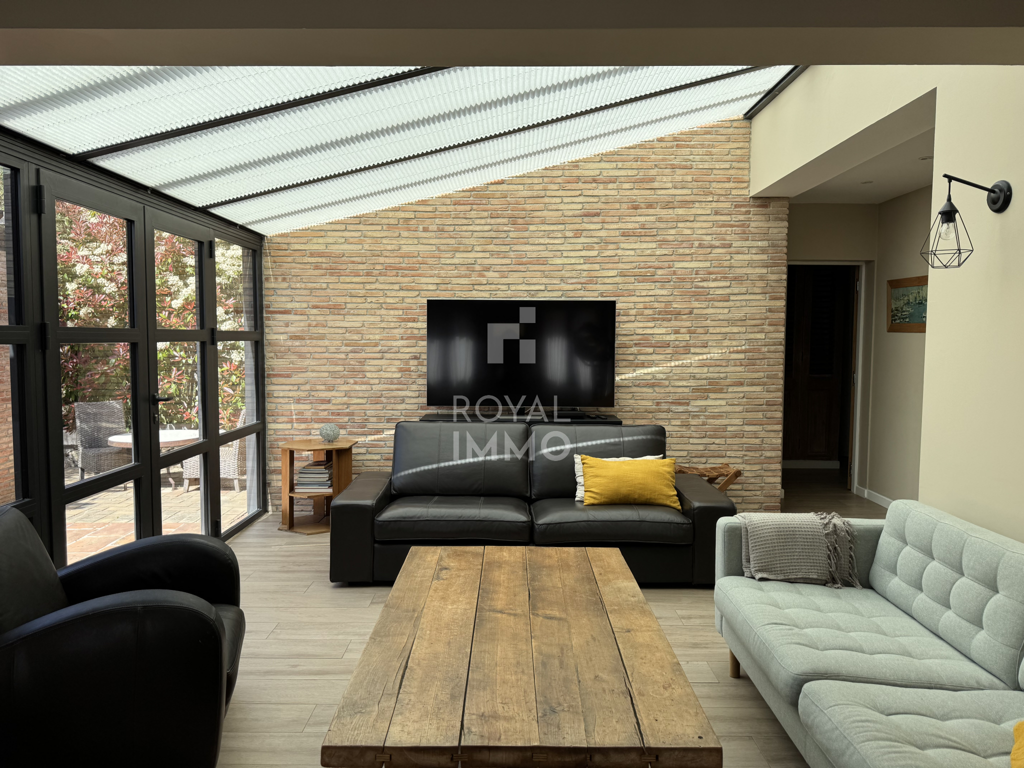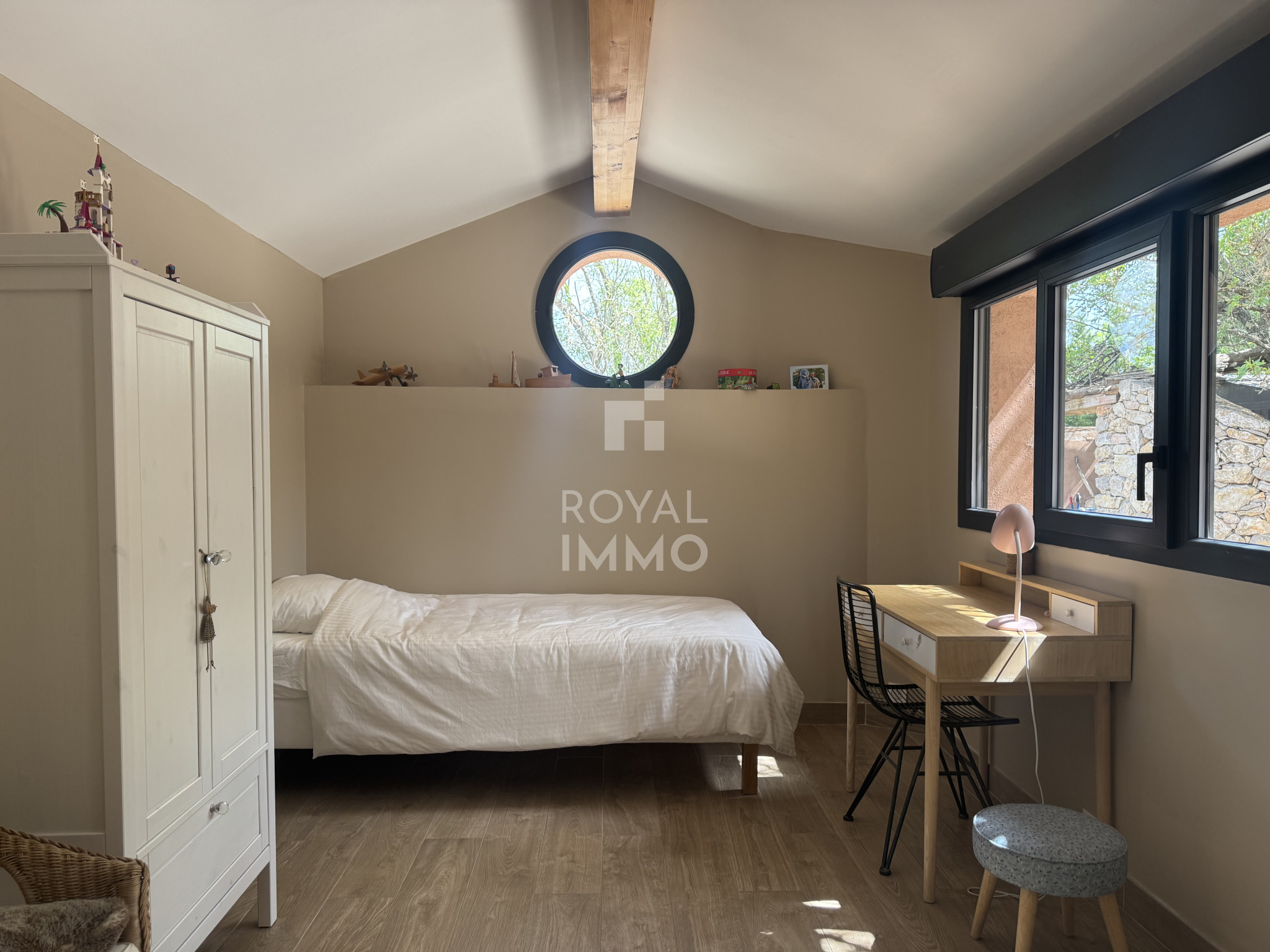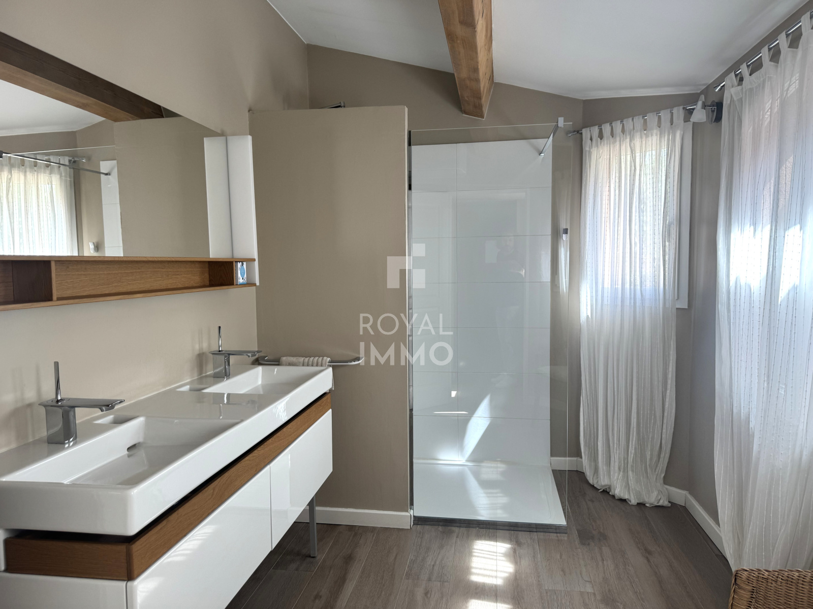 Le bati principal est composé d'une entrée sur couloir lumineux grâce à ses verrieres, un séjour, 1 chambre parentale avec dressing et sde. Dégagement, 2 chambres avec wc et sde (avec baignoire et douche). Côté opposé, buanderie, cuisine spacieuse. Le bâti est entièrement de plain pied.