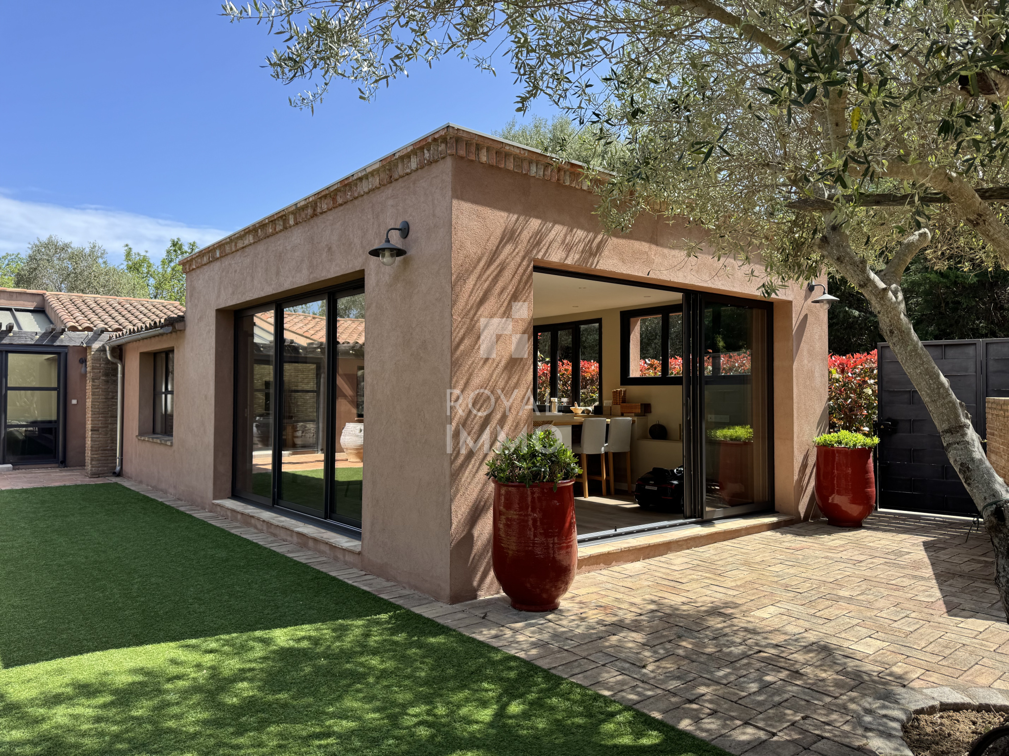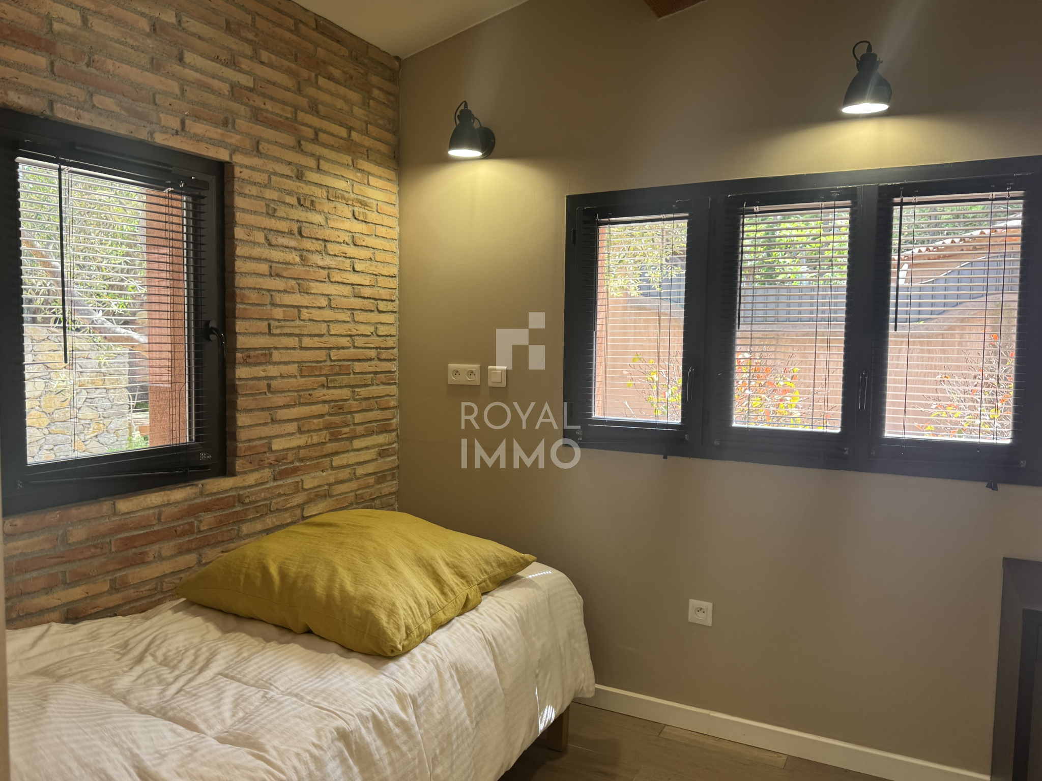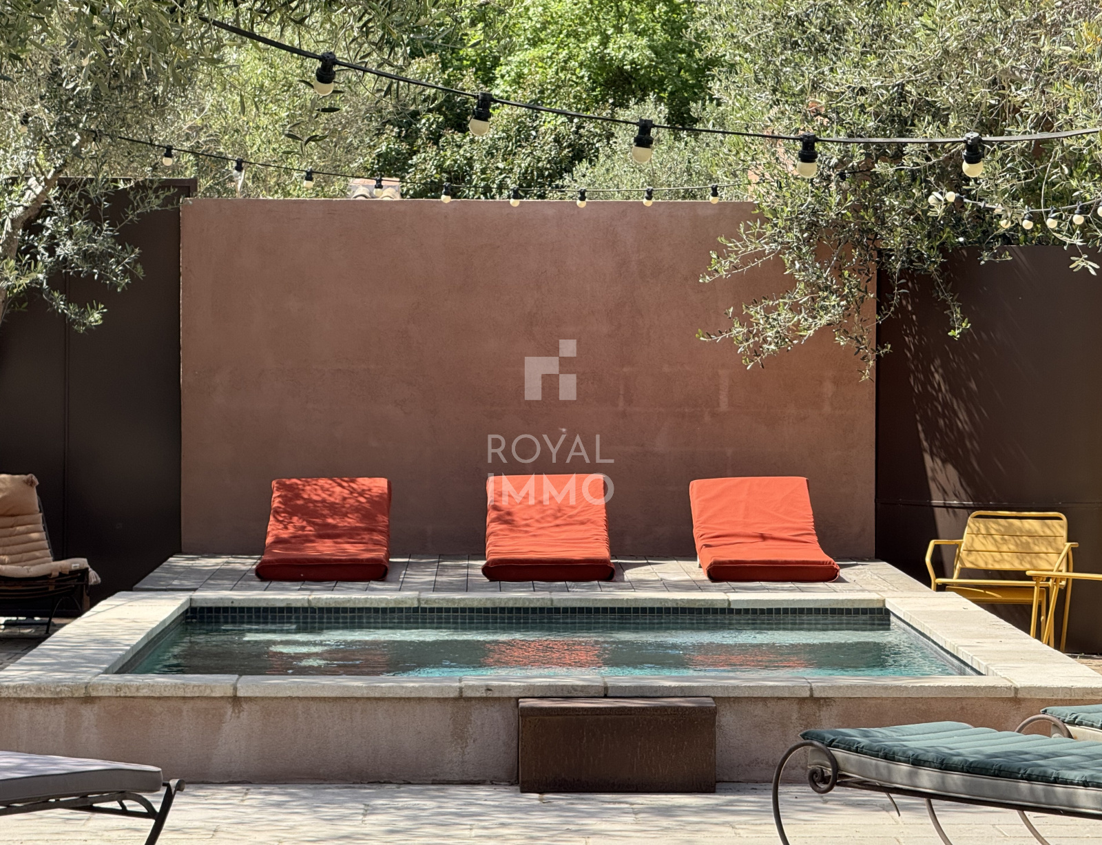 HYERES - L'ESTALLE - Nichée au coeur d'anciennes terres agricoles, cette propriété unique en son genre offre un cadre de vie authentique bercé par un calme absolu. Son architecture atypique aux aspirations d'haciendas andalouses mêle avec justesse des matériaux authentiques: pierres, briques et terres cuites s'entrelacent pour créer une atmosphère chaleureuse et intemporelle.