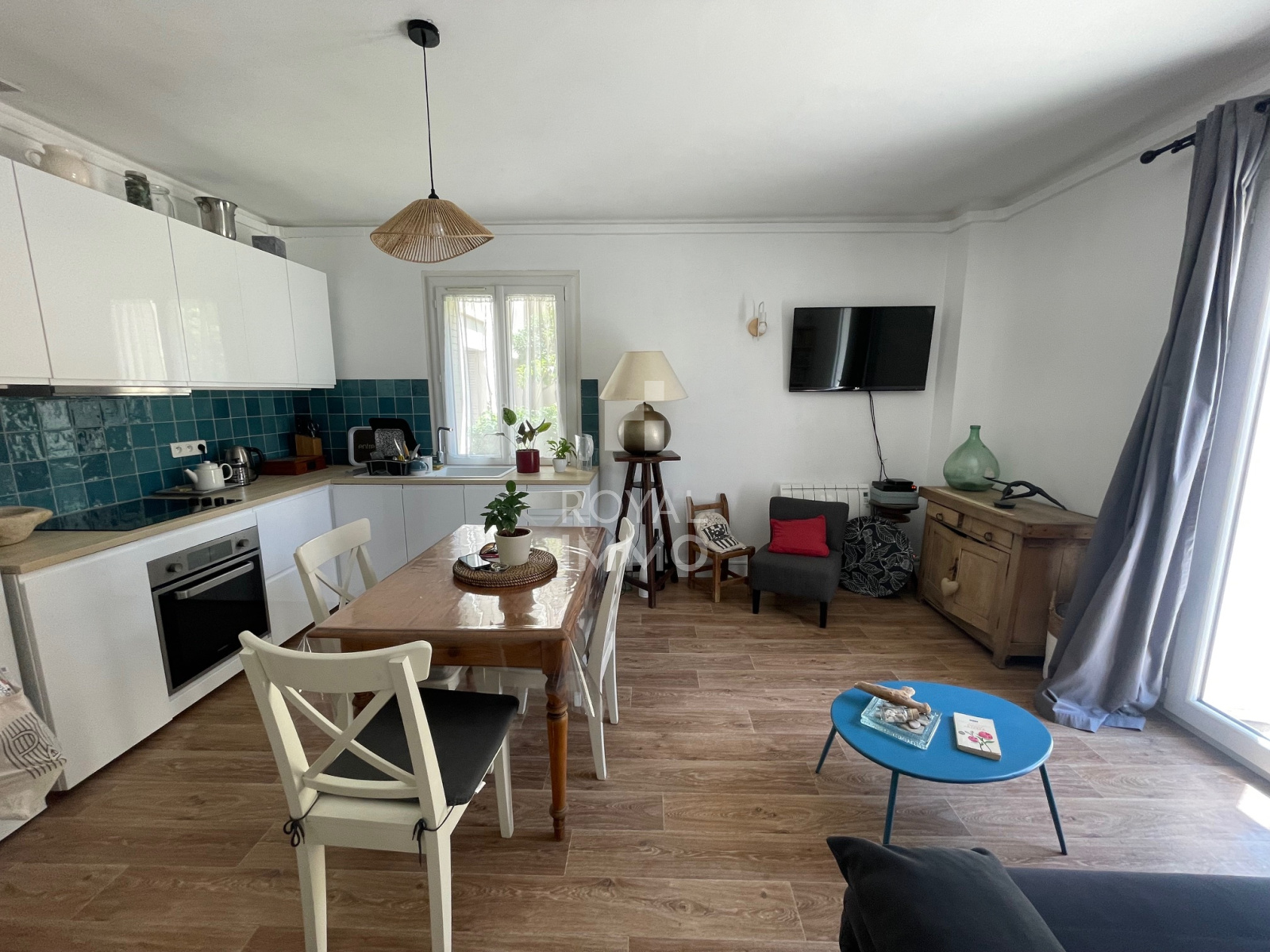 L'appartement se compose d'une entrée, d'un séjour lumineux avec cuisine ouverte, de deux chambres, ainsi que d'une salle d'eau avec wc.