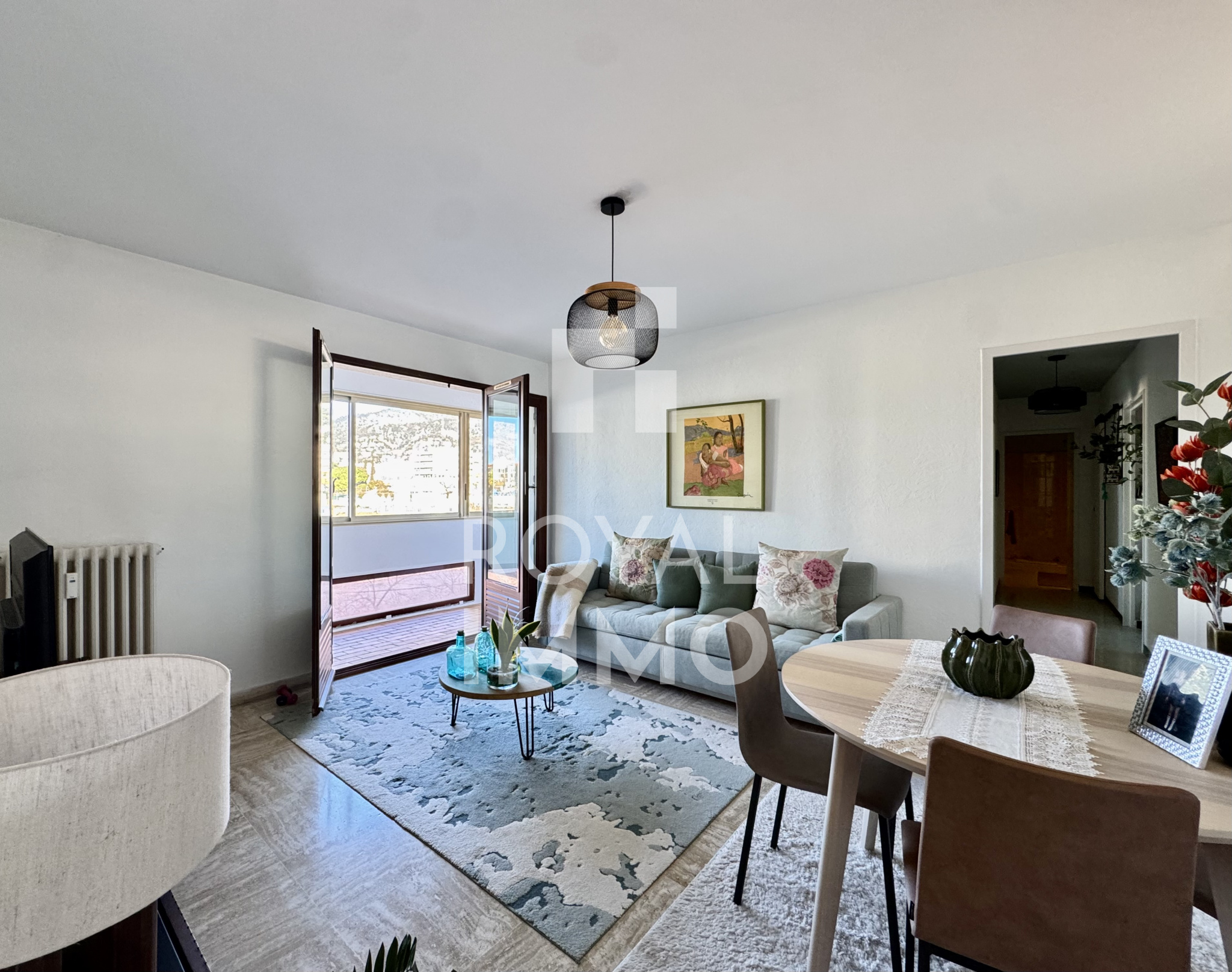 L'appartement se compose d'un séjour lumineux offrant un bel espace de vie, de deux chambres, une cuisine séparée fonctionnelle, une salle d'eau avec douche à l'italienne, wc séparés.