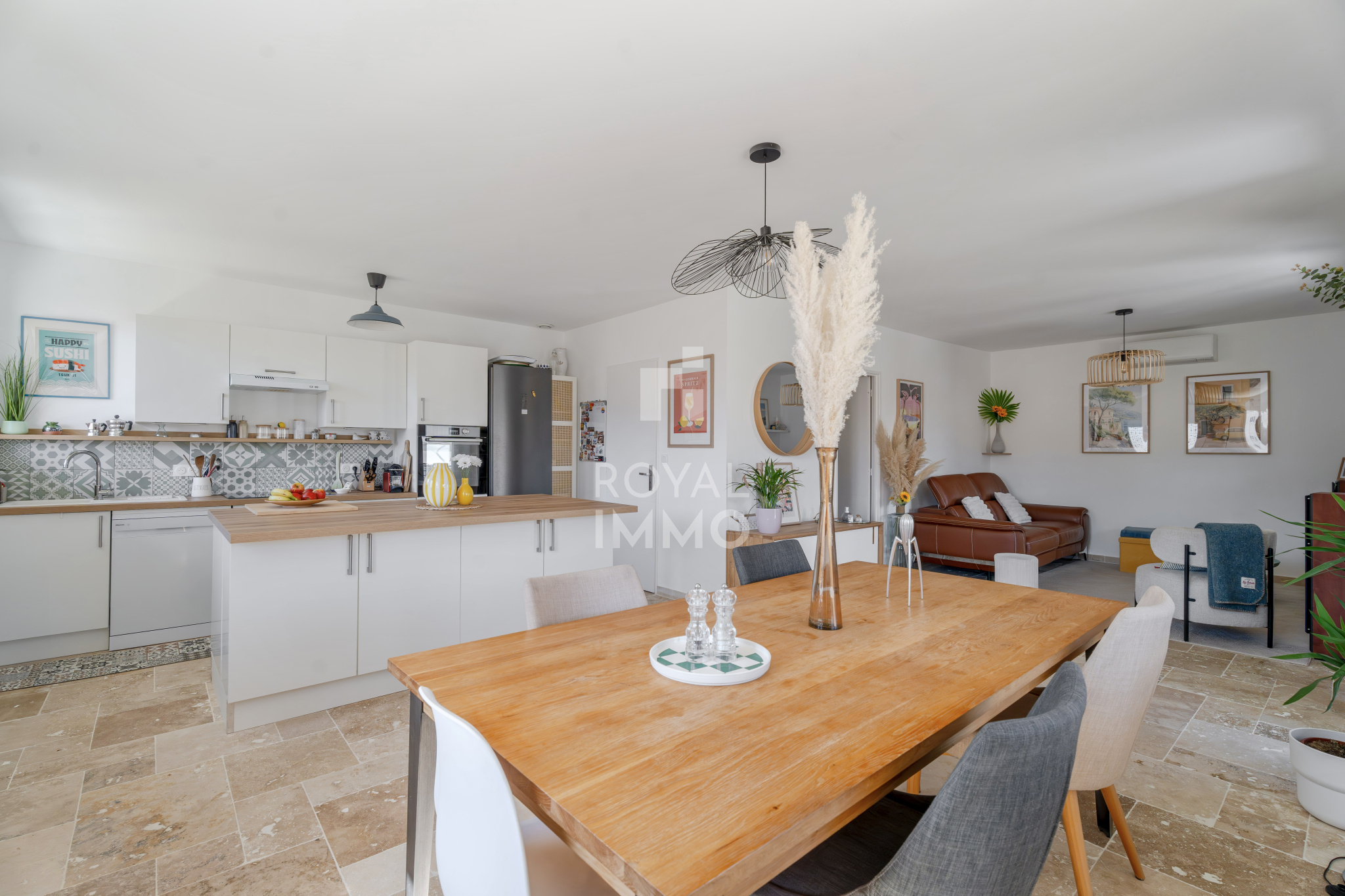 Dès l’entrée, vous découvrez une belle pièce de vie de plus de 40 m², pensée pour le confort et la convivialité. Elle se compose d’une cuisine ouverte moderne parfaitement intégrée à un salon / salle à manger baigné de lumière.