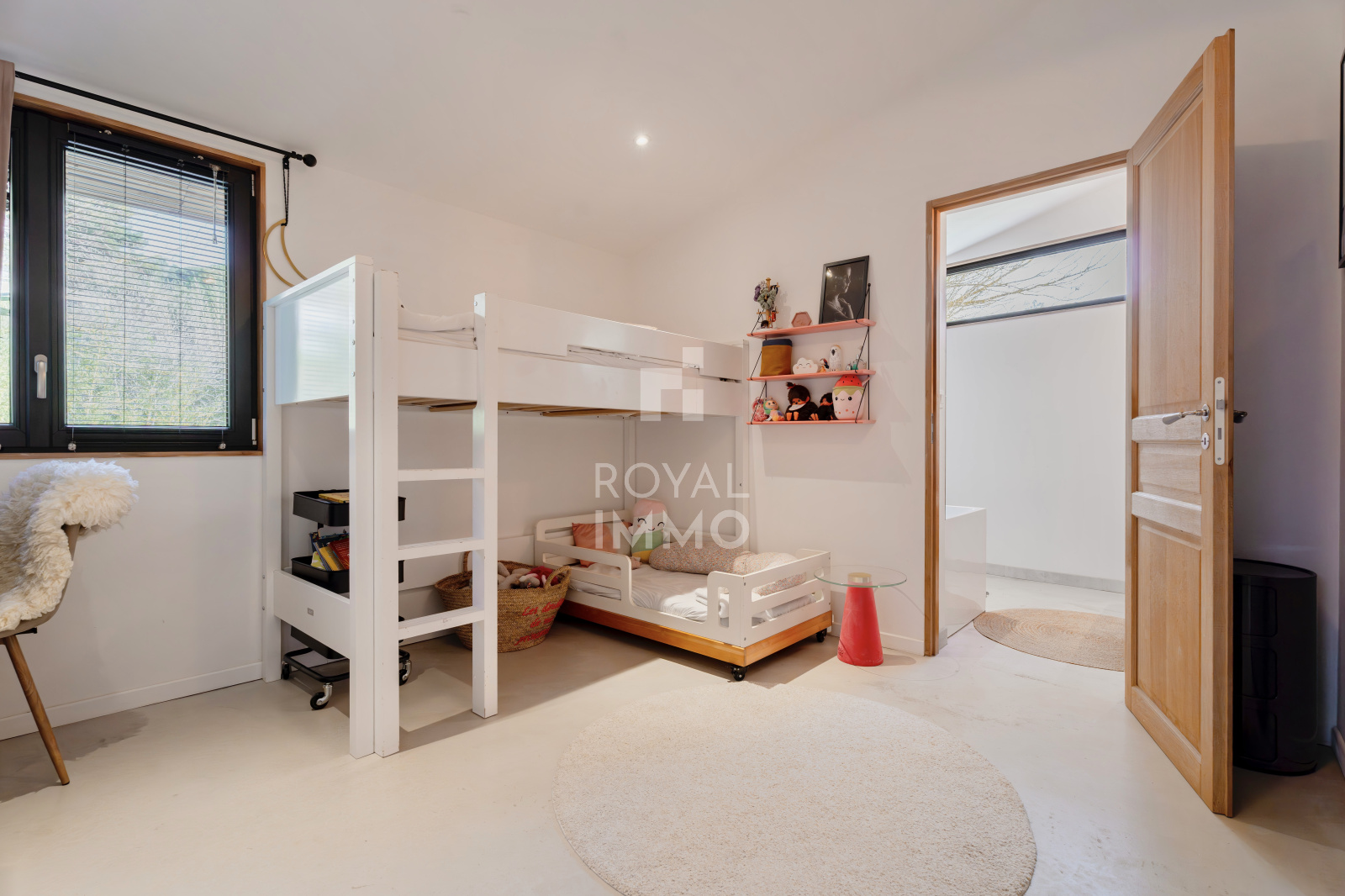 A l'étage, vous retrouverez un vaste espace avec balcon et deux chambres en enfilade ainsi qu'un grand dressing. Elle developpe donc 155m² habitable.