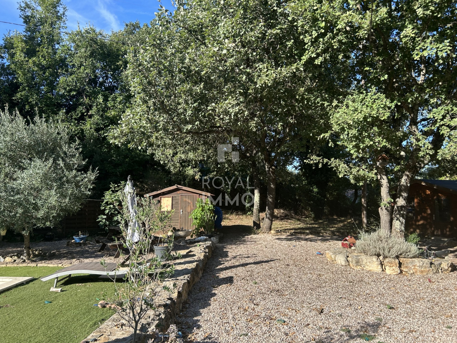 A l'extérieur, piscine (Desjoyaux), four à pizza, 3 cabanons dont un en dur, jardin arboré, terrasses.