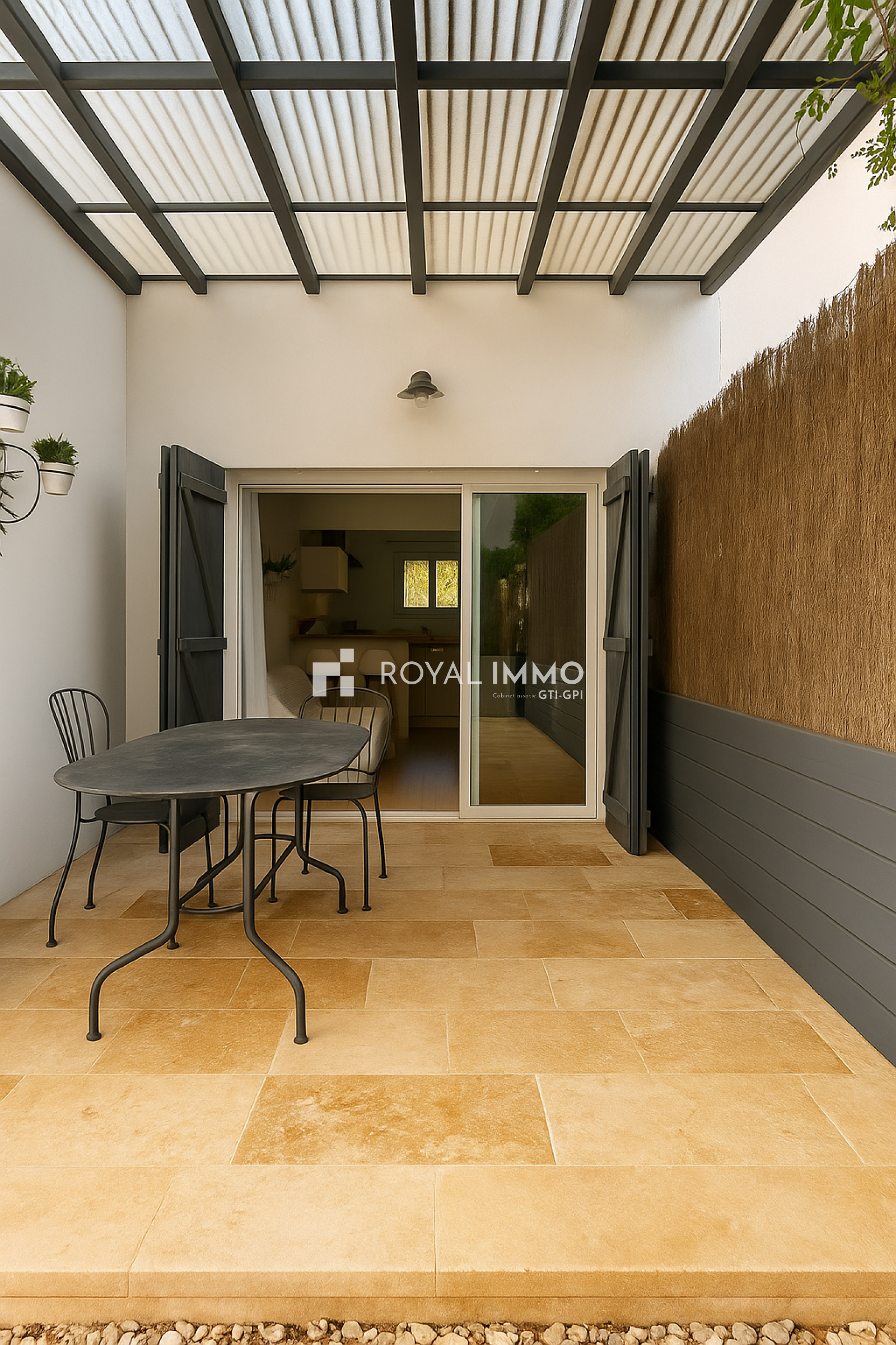 Elle se prolonge avec la mitoyenneté d'une maison de 60 m² de plain pied avec normes PMR, avec possibilité d'ouverture sur la maison principale ou idéale pour agrandir l'existant ou parfaite pour loger un proche ou pour une maison de gardien ou un rendement locatif.