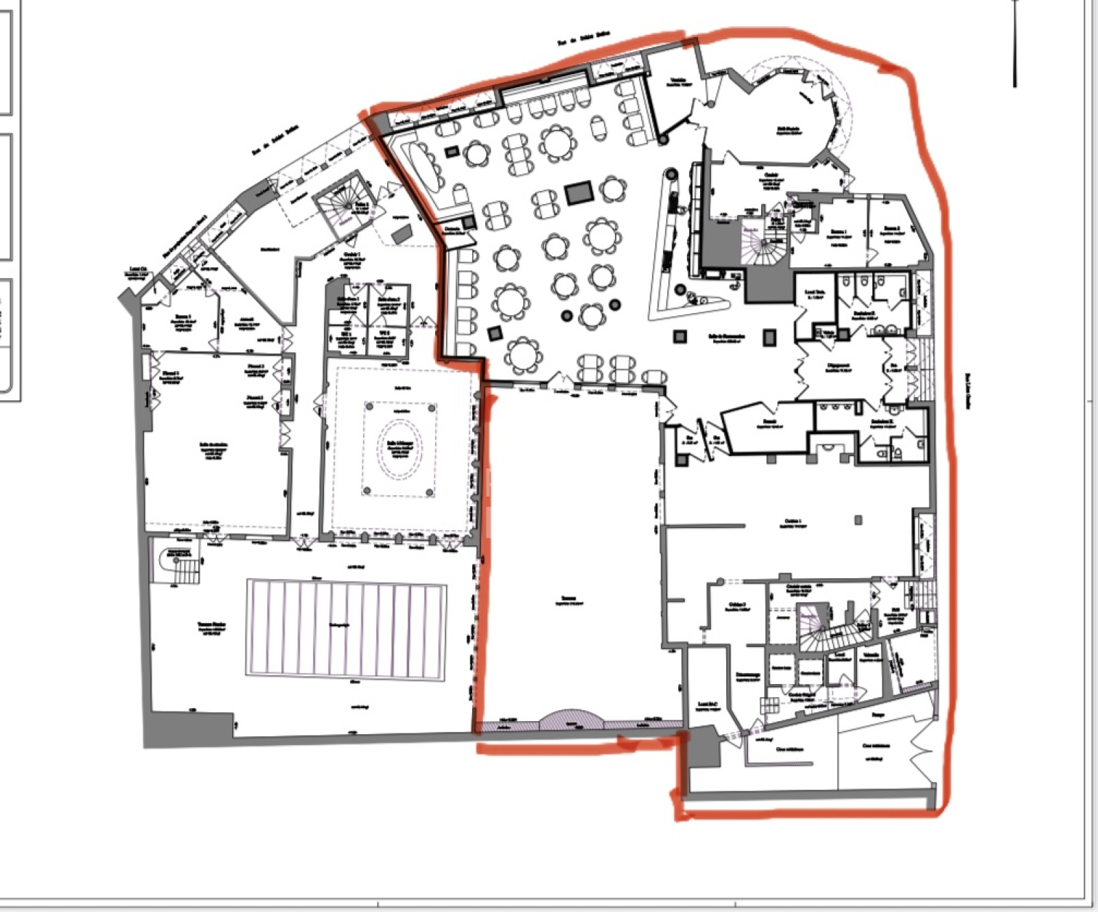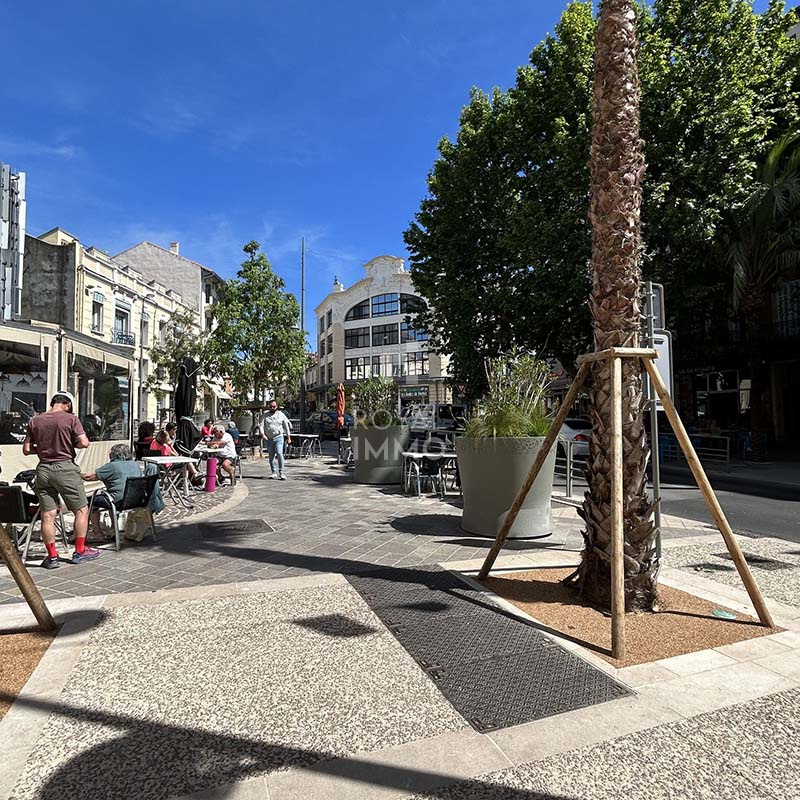 Anciennement exploité en restaurant, ce local développe 800 m² de surface intérieure auxquels s’ajoute une magnifique terrasse patio privative de 300 m², véritable atout différenciant en centre-ville.