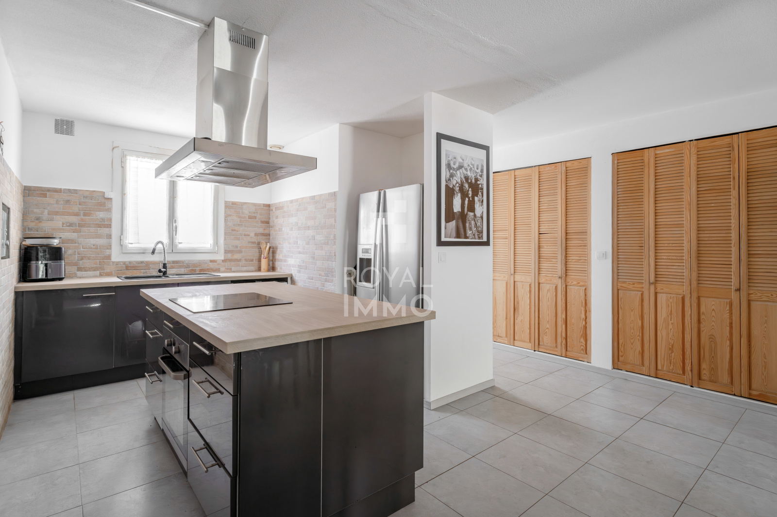 EXCLUSIVITE - LA GARDE - A deux pas du centre ville et du gymnase Bernard Chabot, maison en très bon état de 94m² et composée d'une entrée avec placards, double séjour spacieux de 50m² avec cuisine américaine et accès terrasse Sud avec piscine et cuisine d'été, wc ind.