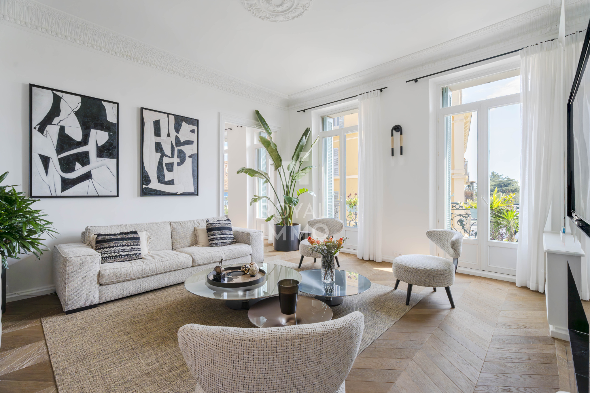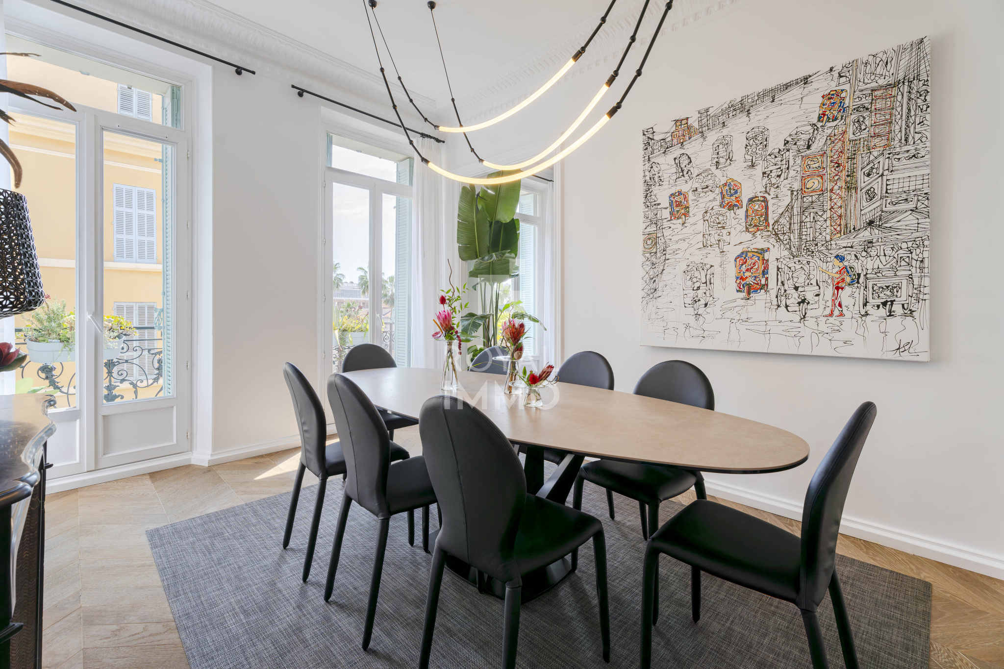 En plein cœur du centre-ville de Hyères-les-Palmiers, découvrez un appartement d’exception, occupant à lui seul tout le troisième étage d’un bel immeuble haussmannien avec ascenseur.