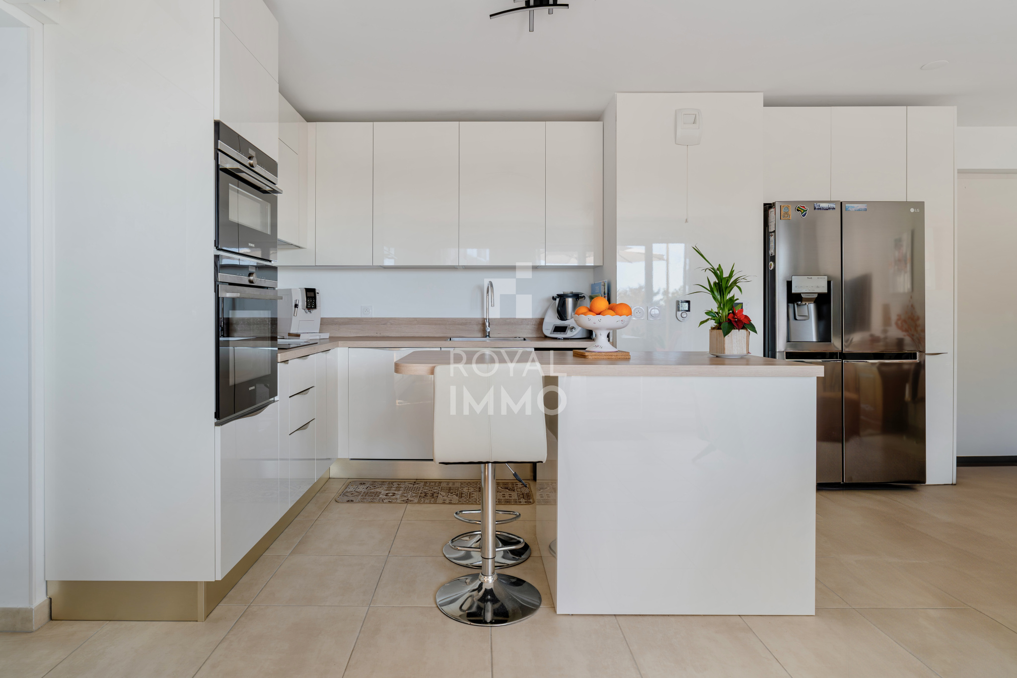 La cuisine moderne, entièrement équipée, a été conçue avec des matériaux et équipements de qualité, alliant confort et élégance.