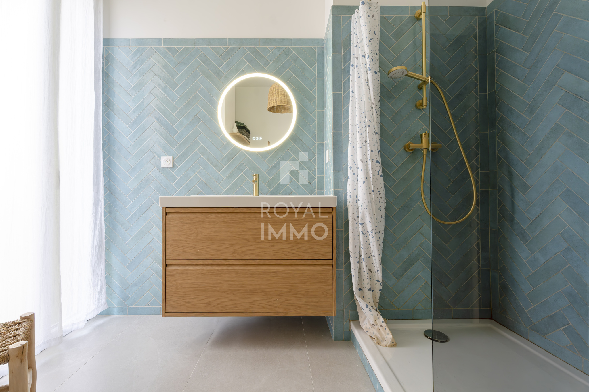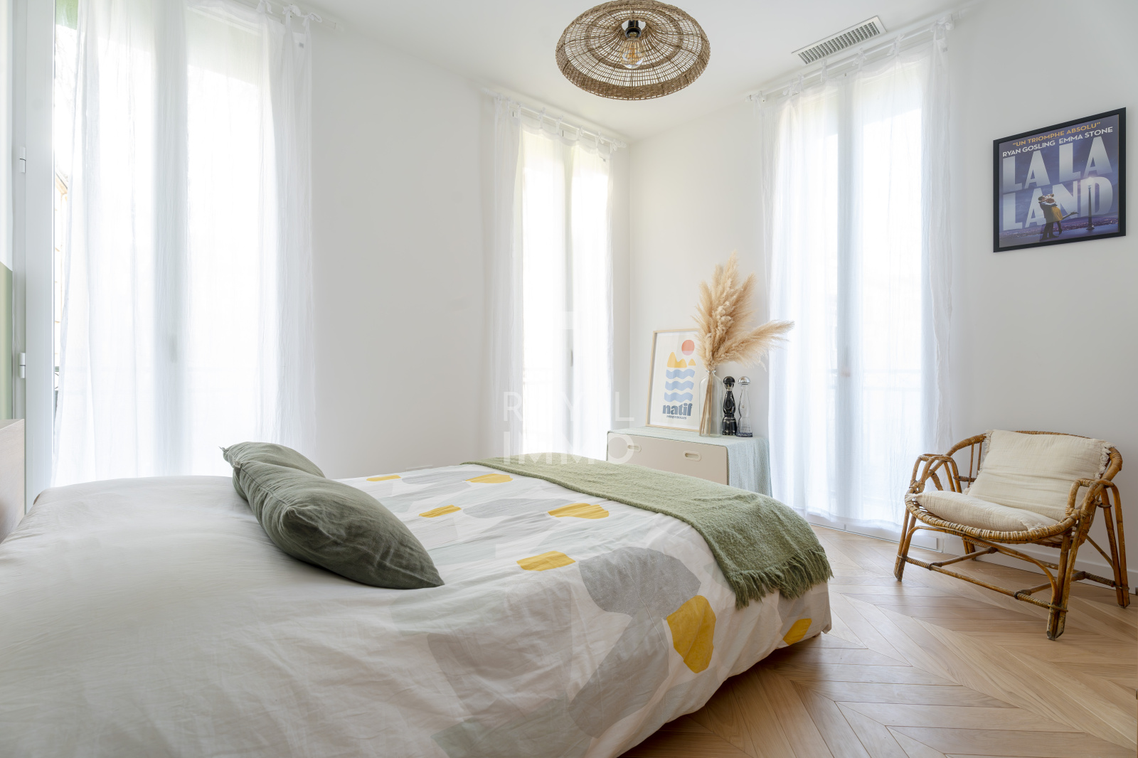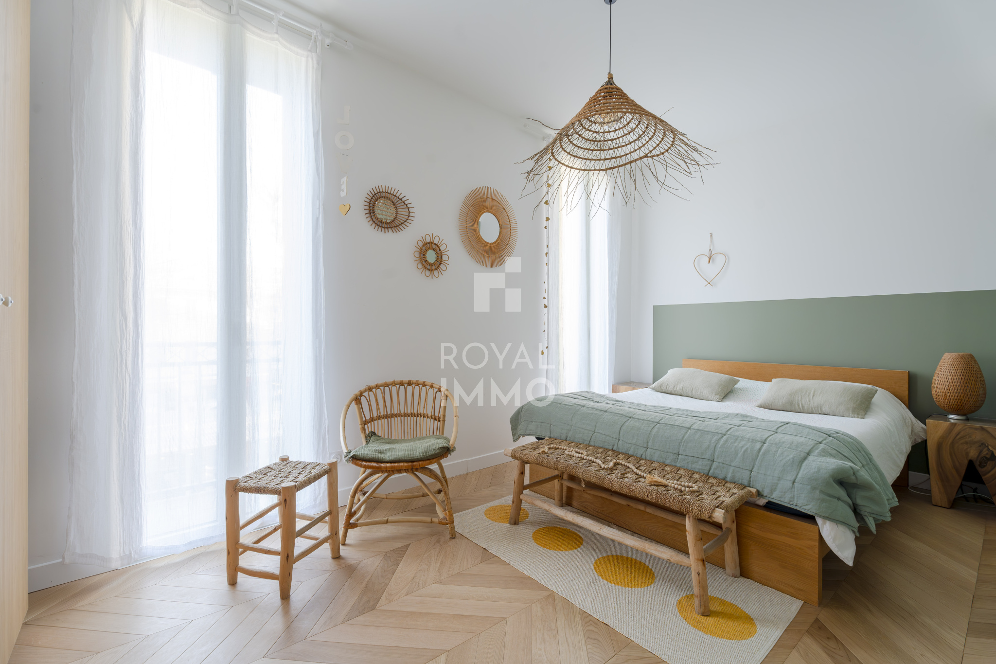 À l’étage supérieur, l’appartement s’articule autour d’un vaste espace de vie de plus de 55 m², baigné de lumière, réunissant salon, salle à manger et cuisine aménagée et équipée, dans une ambiance élégante et conviviale.