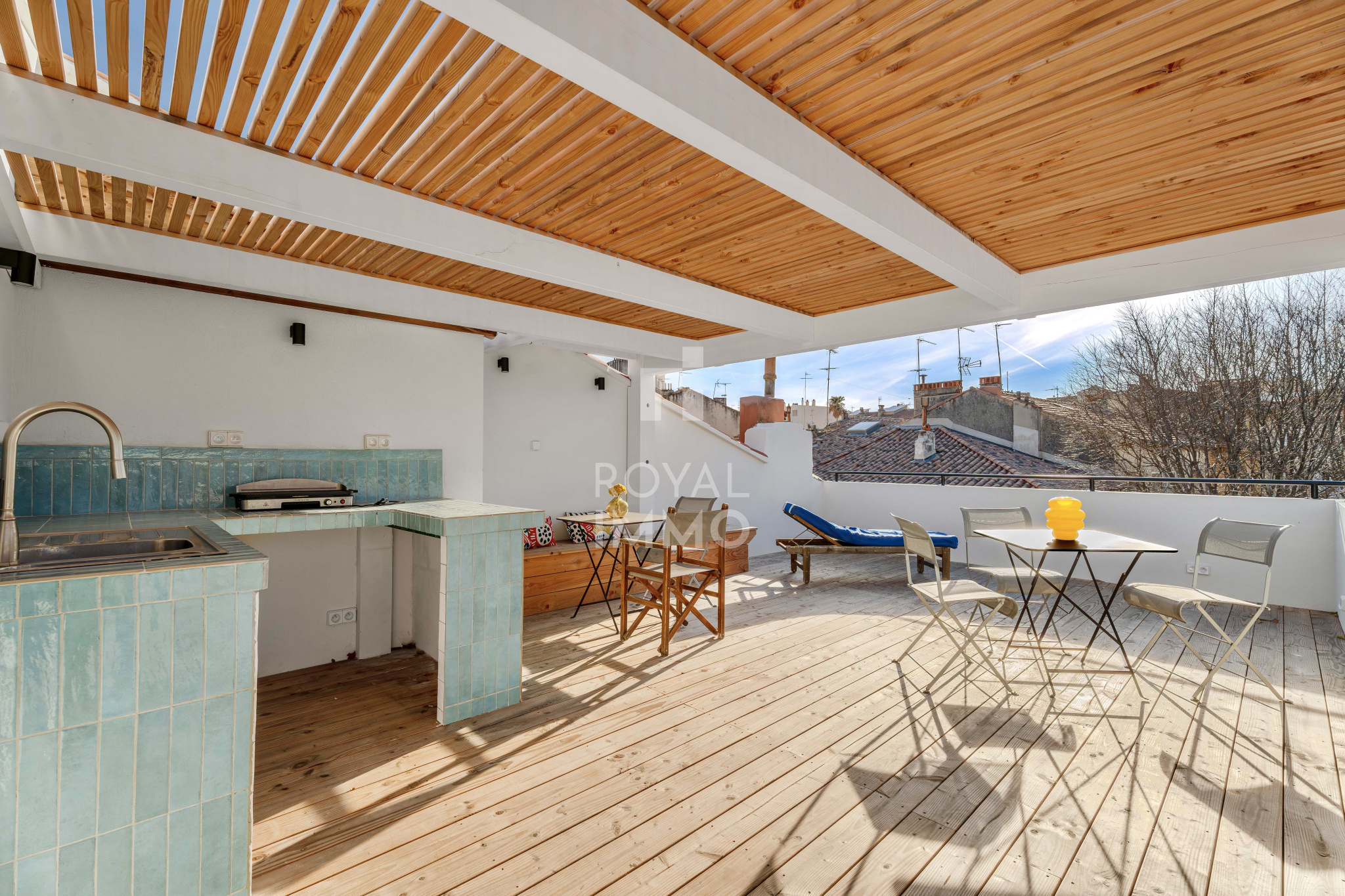 Le bien est sublimé par un superbe toit-terrasse de 36 m², véritable signature de l’appartement. Aménagé avec une cuisine d’été sous pergola, cet espace extérieur rare en centre-ville devient une pièce de vie à part entière, idéale pour recevoir, se détendre ou profiter du climat méditerranéen en toute intimité, à seulement quelques minutes à pied des plages.