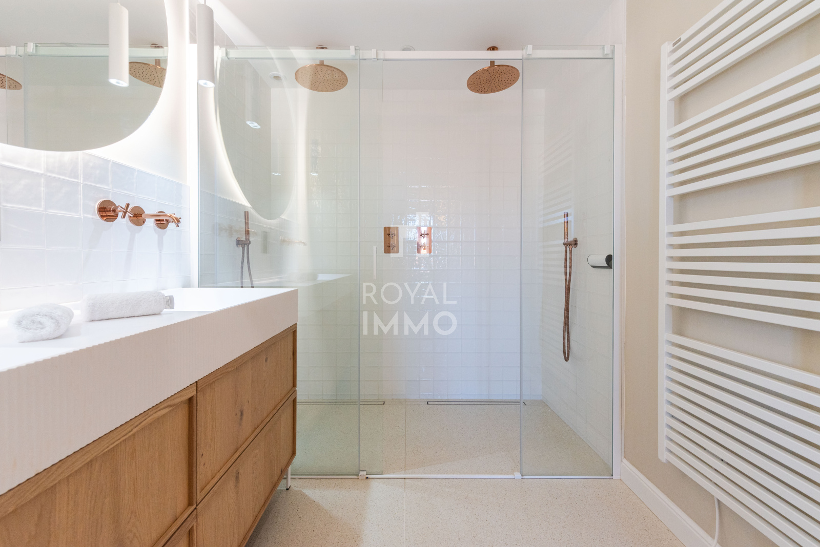 Au premier, deux chambres, un grand dressing, une salle de bain avec douche et baignoires ainsi qu'un WC,