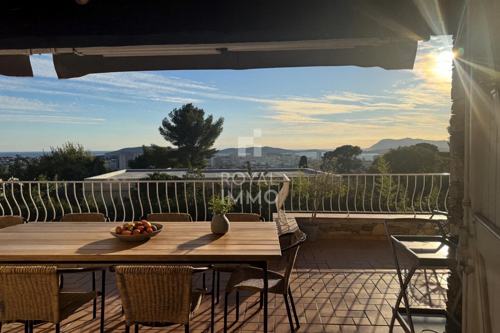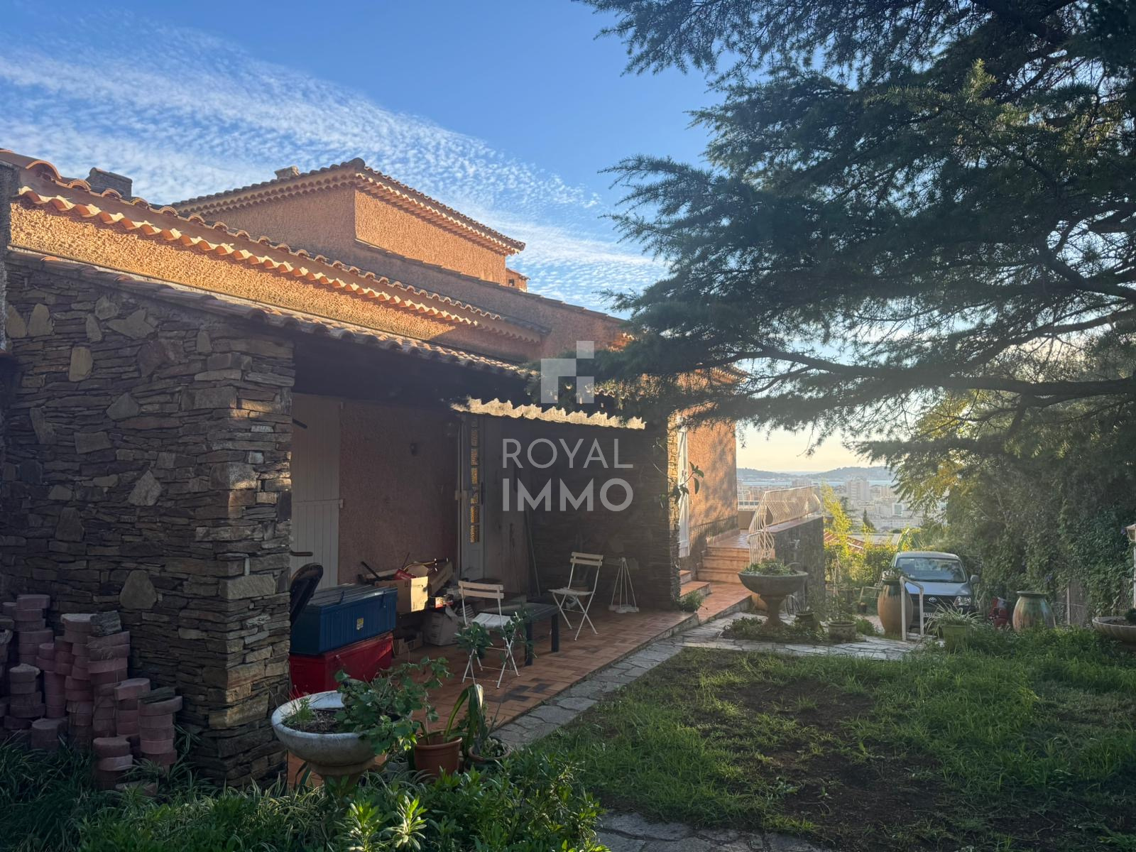 A Saisir, BAS-FARON, Les HAUTS DE LA LOUBIERE -Rare à la vente! Venez découvrir cette maison indépendante d'environ 200 m² édifiée sur une parcelle d'environ 1000 m². Elle se compose d'une entrée avec placards, cuisine indépendante entièrement aménagée, salon-séjour ouvrant sur terrasse avec vue panoramique imprenable sur la rade + Mer, 2 chambres dont une avec dressing + placard, salle d'eau, WC indépendant. A l'étage, 2 chambres, salle d'eau avec toilettes, nombreux rangements et espaces de stockage, climatisation, chaudière récente, sublimes pierres de Bormes en façade.