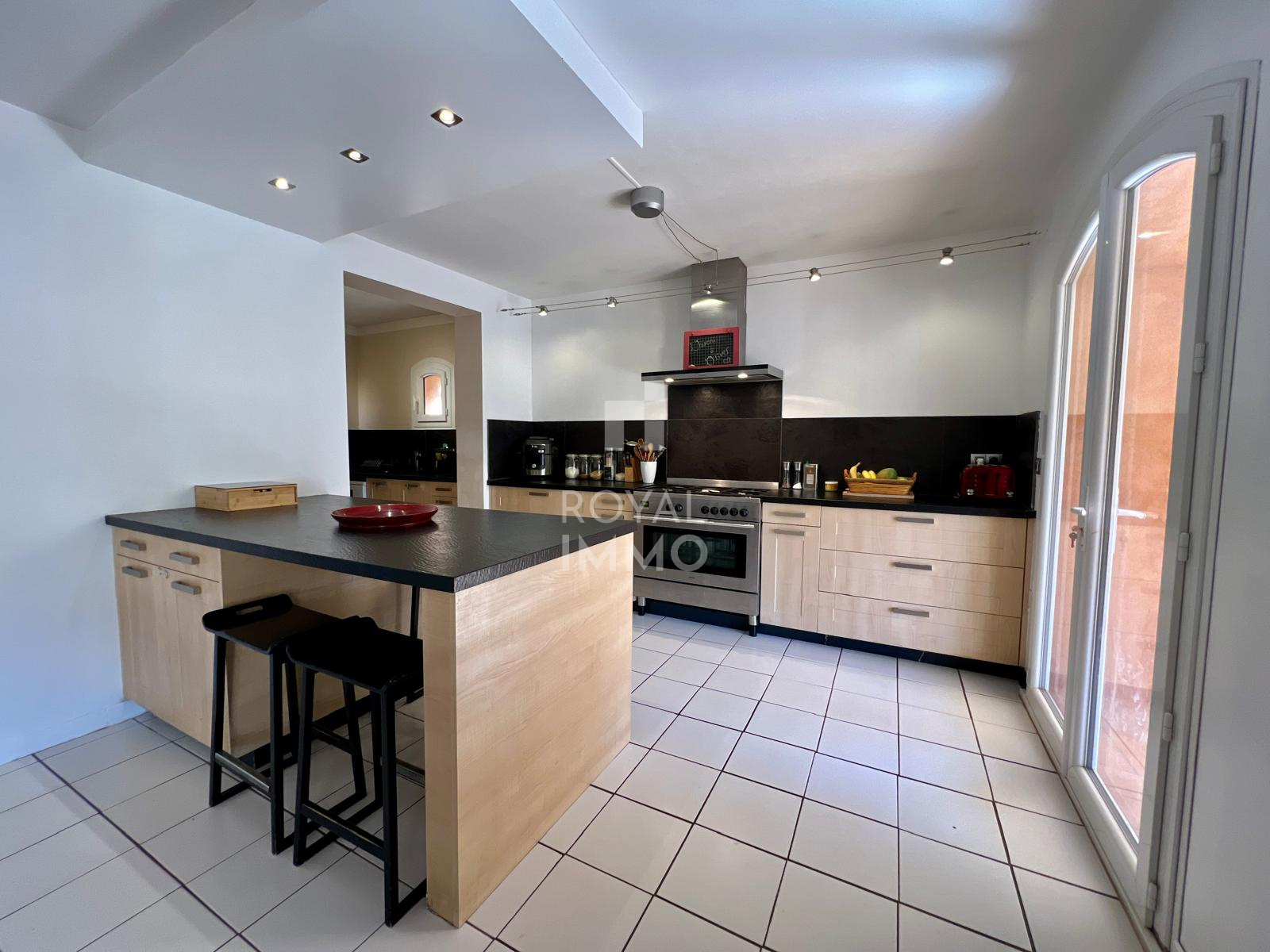 La cuisine ouverte, moderne et entièrement équipée, bénéficie d’un agencement optimisé complété par une buanderie et un atelier très pratiques.