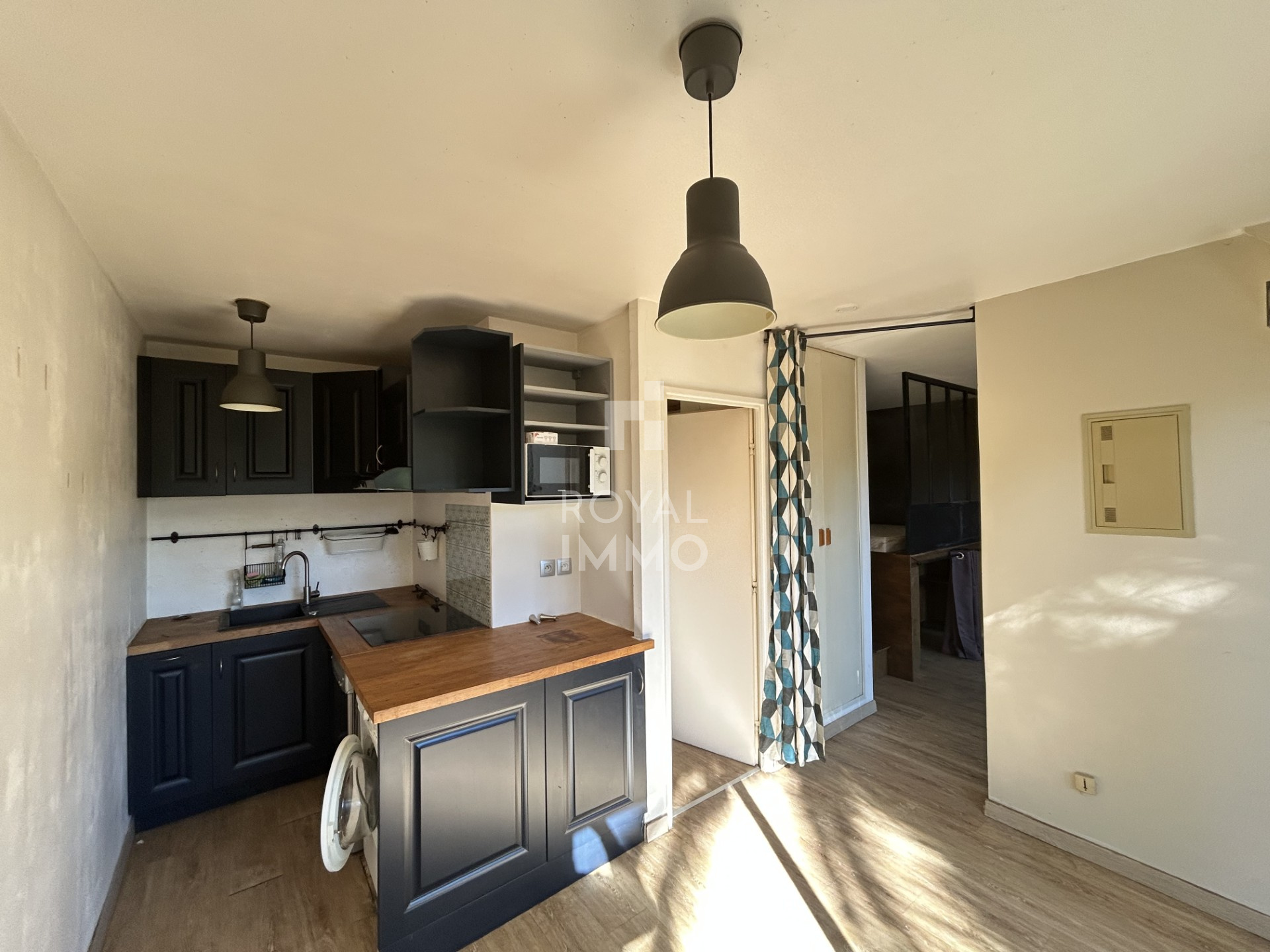 TAMARIS- LIBRE DE TOUTE OCCUPATION - Pieds dans l'eau, face au petit Port du Manteau et au sein d'une résidence recherchée de grand standing arborée avec piscine et gardien, magnifique Rez-de-Jardin de type 1 d'environ 29 m² avec entrée indépendante. Il se compose d'une pièce principale avec coin nuit sur-mesure, placards, cuisine indépendante aménagée, salle d'eau avec toilettes.