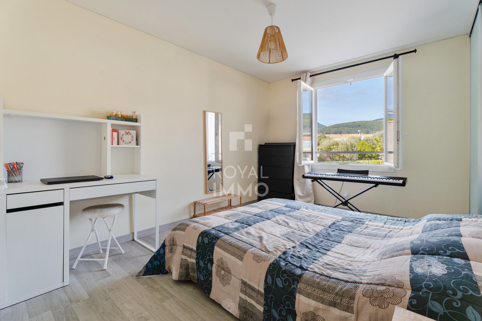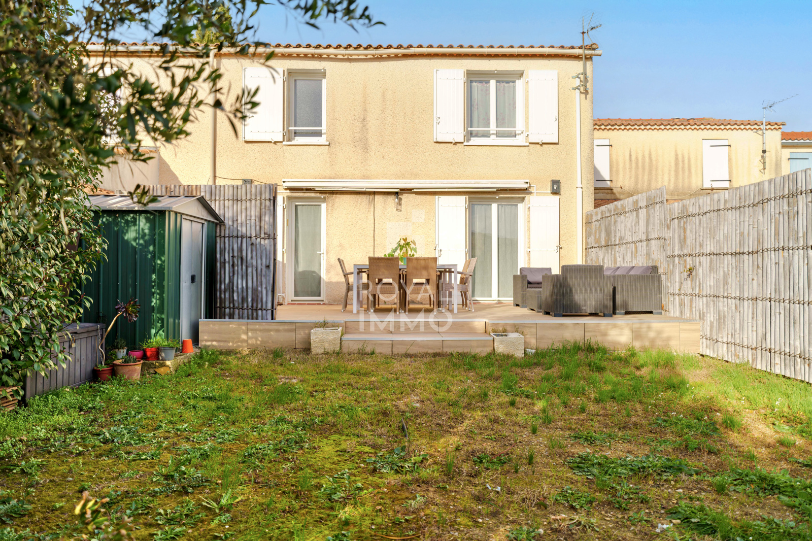 Proposée en exclusivité par ROYAL IMMO, située à La Farlède, à seulement 5 minutes à pied du centre-ville, cette maison T4 de 91 m2 bénéficie d’un emplacement privilégié, à proximité immédiate des écoles, commerces et commodités, tout en offrant un cadre de vie calme et agréable. Entièrement rénovée en 2017, elle séduit par sa luminosité, son exposition plein sud et sa climatisation intégrale. Au rez-de-chaussée, vous découvrirez une entrée ouvrant sur un vaste séjour de 40 m², baigné de lumière, avec cuisine ouverte aménagée et équipée, idéal pour les moments en famille ou entre amis. Un WC indépendant complète ce niveau. L’espace de vie donne accès à une agréable terrasse de 35 m², prolongée par un terrain piscinable bénéficiant d’un forage, parfait pour vos projets d’aménagement extérieur. À l’étage, la maison offre trois grandes chambres avec placards, une salle d’eau élégante avec double vasque en travertin, ainsi qu’un WC indépendant, garantissant confort et fonctionnalité. Un garage fermé et isolé de 16 m², équipé de l’électricité et d’une arrivée d’eau, complète ce bien et offre de nombreuses possibilités (stationnement, atelier, buanderie…). Maison clé en main, idéale pour une famille ou un couple recherchant confort, emplacement et qualité de vie. Bien proposé par MJ agent commercial 0621837824 rsac : 838958635 Les informations sur les risques auxquels ce bien est exposé sont disponibles sur le site Géorisques: www.georisques.gouv.fr