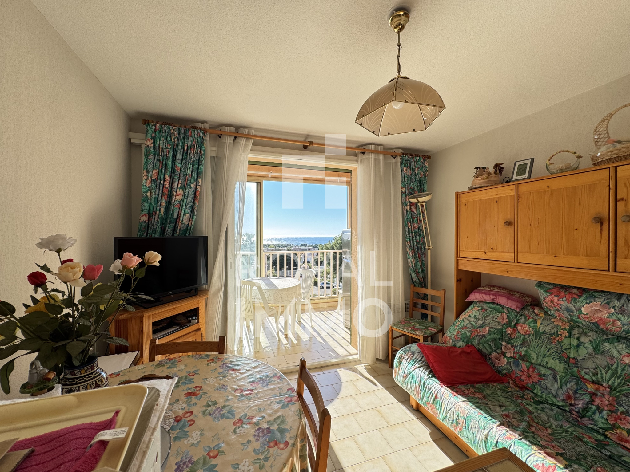 Composé d'un séjour avec coin cuisine, une chambrette, une salle d'eau et une terrasse fermée.