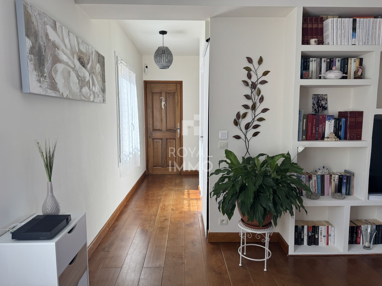 ETAGE: Dégagement/couloir, salon sur terrasse, suite parentale sur terrasse avec dressing et sde, 3 chambres, wc ind, sdb.